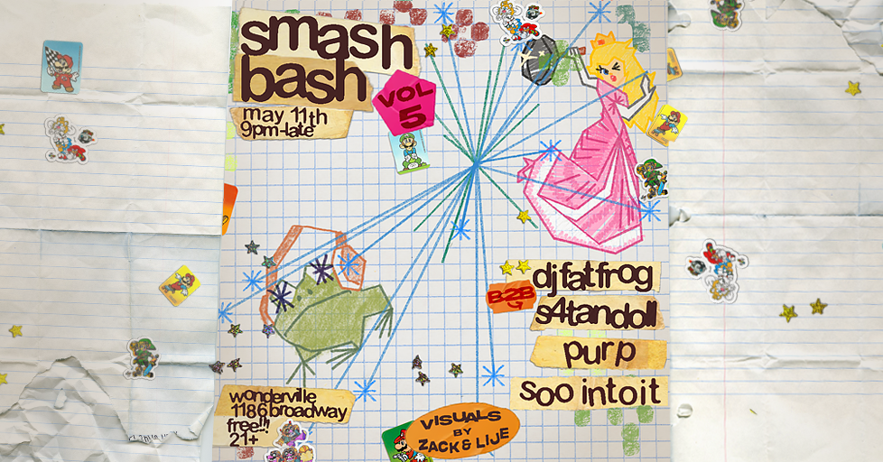 Smash Bash makes its triumphant return to the Wonderville stage :) featuring a hefty lineup of DJs spinning techno, jungle, VGM, and club music all night whilst attendees battle it out in Super Smash Bros. Ultimate for the tourney crown. Visuals all night by coolguy.zackdresher and lije.mo!