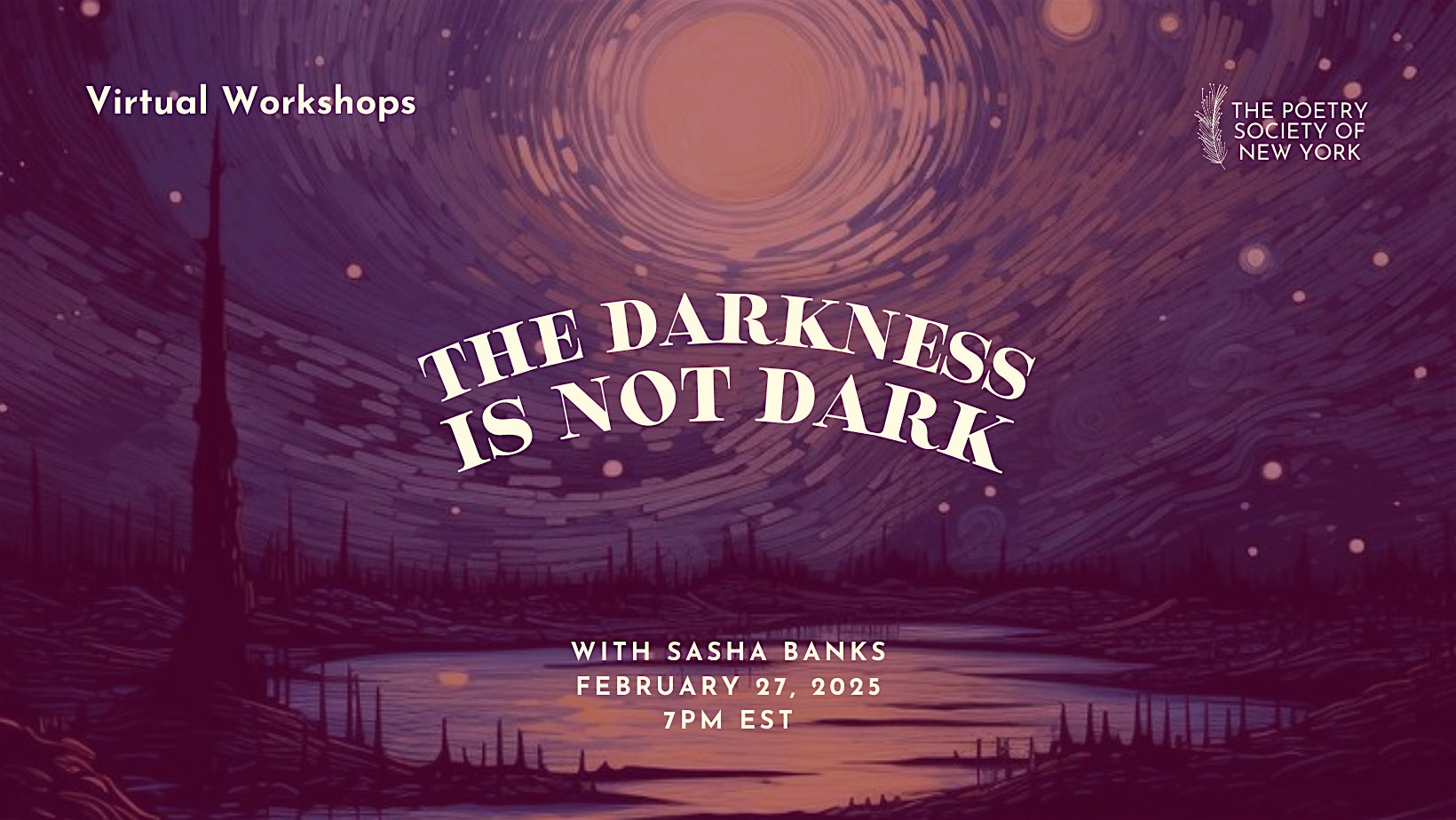 Everything begins in darkness from the start of our known galaxy, to each day, to our births. There are generative properties in the womb of The Darkness that both shrouds and makes us. There is nothing to fear in The Darkness; it is not Dark, not evil or malicious. We will reach into The Darkness and employ its elements of rebirth, imagination, and experimentation, as we examine and challenge our fear, our uncertainty, and our undoing. We’ll look at texts from Joy Harjo, Vi Khi Nao, Aracelis Girmay, Patricia Smith, and others.