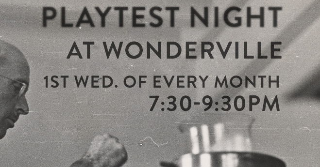 Have a game you’re working on? Want to get some testing and feedback? Bring your prototype to Wonderville! No game of your own but want to see what game designers in NYC are cooking up? The more testers the merrier!