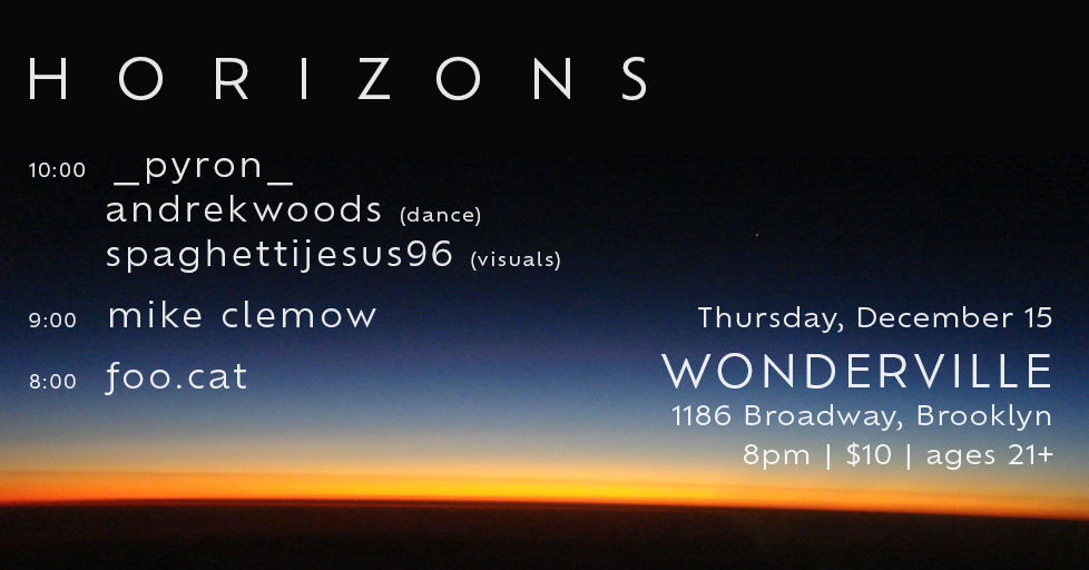 A night of atmospheric synthesis featuring PYRON+Kareem Woods, Spaghetti Jesus, Mike Clemow & foo.cat