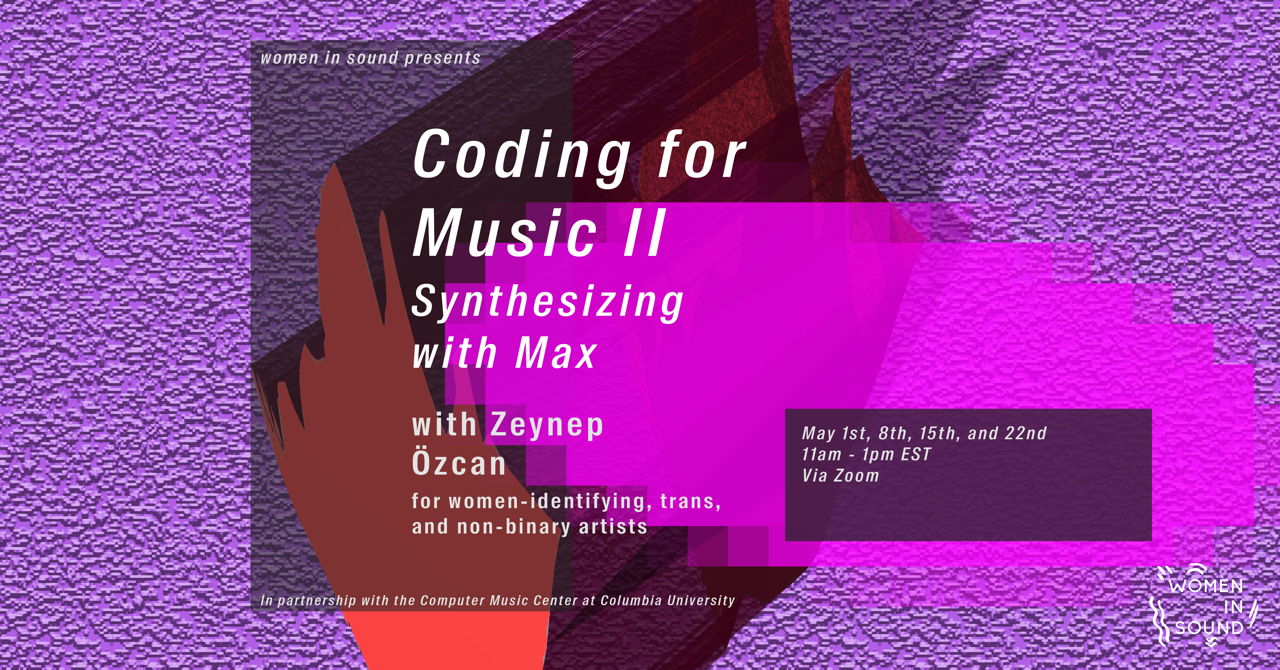 Coding for Music II is an expansion on our introductory Max programming language course. It will broaden the ways you can use digital sound synthesis techniques within Max. Led by sound artist and educator, Dr. Zeynep Özcan, participants will learn how to implement polyphonic and granular synthesis, sampling, and sequencing.