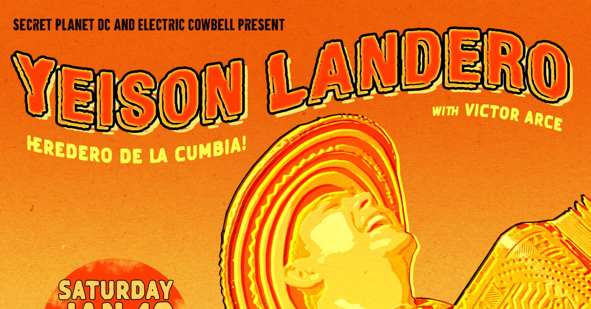 Andrés Landero is known throughout Latin America as “el rey de la cumbia” (the king of cumbia); his grandson began studying with him when Yeison was 7 years old. Today Yeison Landero and his band are keeping the classic cumbia sound alive, updating it for 21st century listeners and dancers, and bringing it to the world through their performances and recordings. We’re pleased to bring them to Richmond for the first time ever. On the bill with Yeison and his band is DJ Crown Vic from Washington DC, spinning all-vinyl sets of music from around the world and across time.