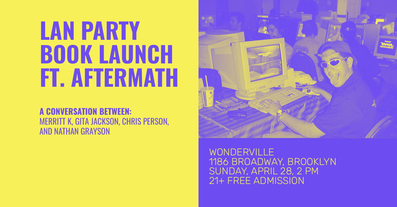 Come celebrate the release of merritt k's book LAN Party, documenting the wild and sweaty days of multiplayer gaming at the turn of the millennium, with a conversation between the author and the crew of the worker-owned video game and culture site Aftermath!
