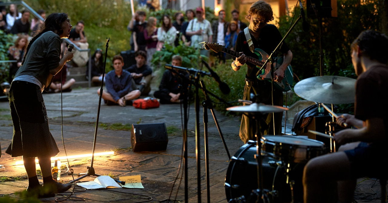 Still House Plants’ Clark, Kennedy, and Hickie-Kallenbach began to write music together during their second year at the Glasgow School of Art, later joining the eclectic scene surrounding the city’s Green Door Studio and undertaking a six-month residency at London’s Cafe OTO. Factor in a semester spent living with an emo band in Chicago and the intimate aggregation of the trio’s sound heterodoxy—an astonishing cohabitation of fractured R&B, wistful sensitivity, and harmolodic guitar—begins to show its strands. With punk autonomy, Still House Plants cite the cut-up affect of UK garage as the impetus for their sparse treatment of chords and words as samples; stuttered, fragmented, and permuted by living drums, guitar, and Hickie-Kallenach’s unmistakable husky voice. On their last release, Fast Edit (Blank Forms Editions, 2020), things sit on top of each other, fall over one another, or click into place, with hearts on sleeves and spirits in motion. As part of their long-awaited first tour of the United States Still House Plants will be in residence with Blank Forms for two nights at 411 Kent in Williamsburg alongside 7038634357, Alan Licht, Dawuna, and Melvin Gibs.