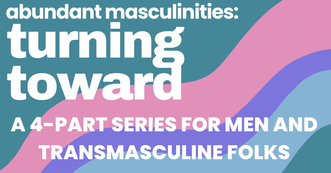What happens when we turn toward our pain? Abundant Masculinities invites men and transmasculine folks to gather over snacks and drinks and together examine patriarchy’s influence over us and our world. The blueprint for masculinity is deeply flawed: men are expected to be exclusively strong and unemotional, dominating and powerful, which only alienates us from ourselves and makes it harder to be grounded and present friends, partners, and community members.