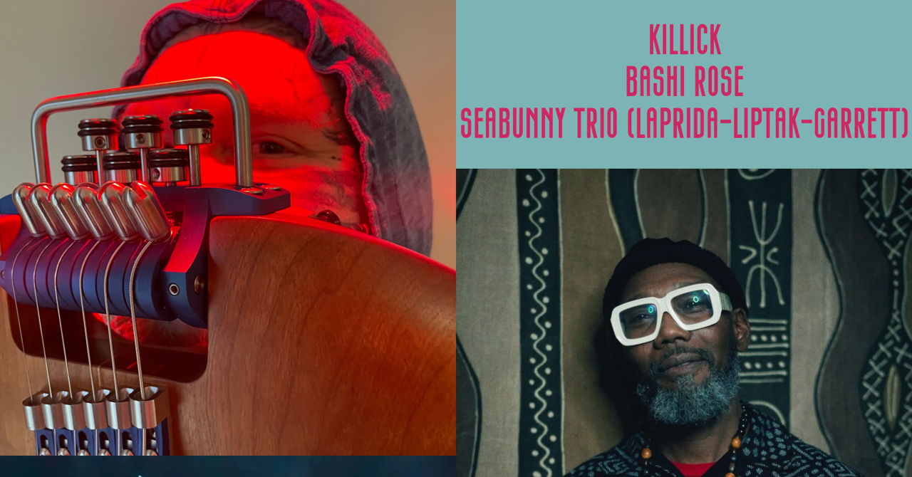 Seabunny Trio is Alma Laprida, Ivan Liptak, and Layne Garrett. DC-based improvisers improvising with trumpet marine, guitar, electronics, percussion, et cetera.