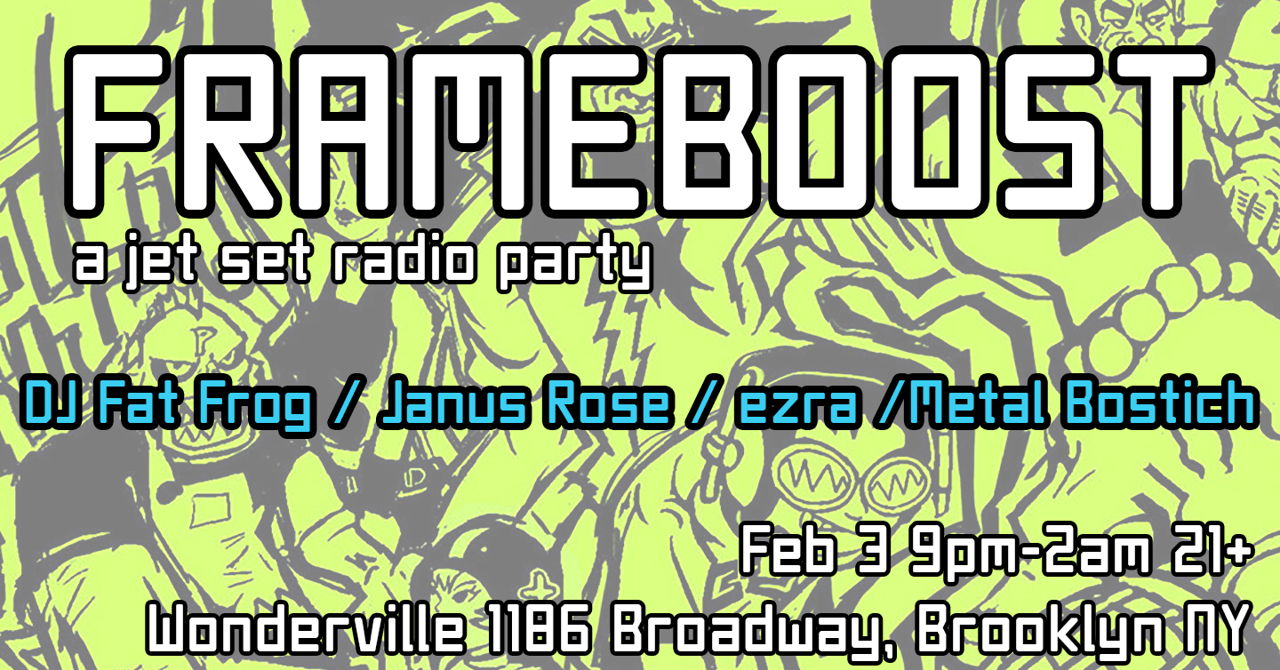 We're kickin' it live! Introducing: FRAMEBOOST, a party inspired by the sounds and styles of the Jet Set Radio series.