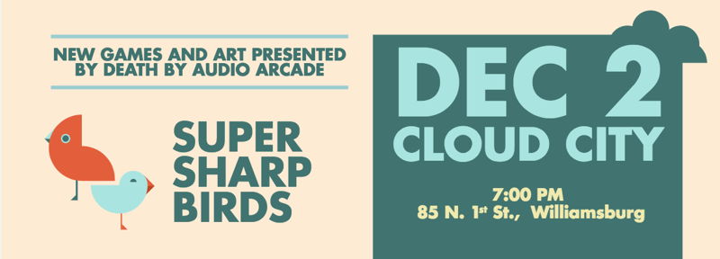 Come out to Cloud City and check out a new crop of games and digital art presented by Death By Audio Arcade. This event features: