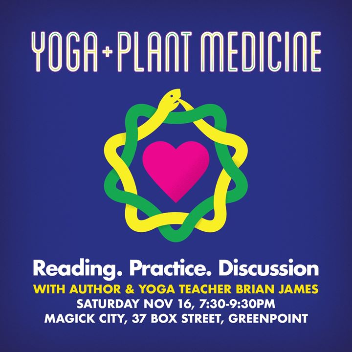 Join yoga teacher, author, transformational coach and host of the Medicine Path Podcast Brian James for an evening of practice, inquiry and integration. Brian will read passages from his new book, Yoga & Plant Medicine, facilitate a discussion/Q&A, and lead an integrative yoga practice.