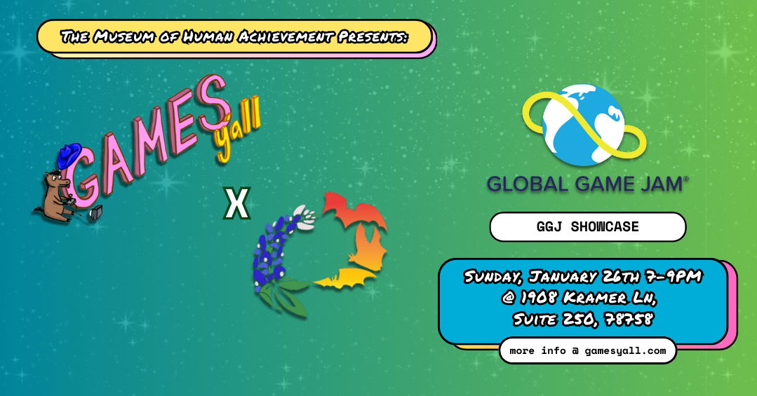 We’re starting off 2025 with a Games Y'all x IGDA collab meetup to showcase projects developed from ATX Global Game Jam 2025! See you there on January 26th from 7-10pm at 1908 Kramer Ln, Suite 250, 78758.