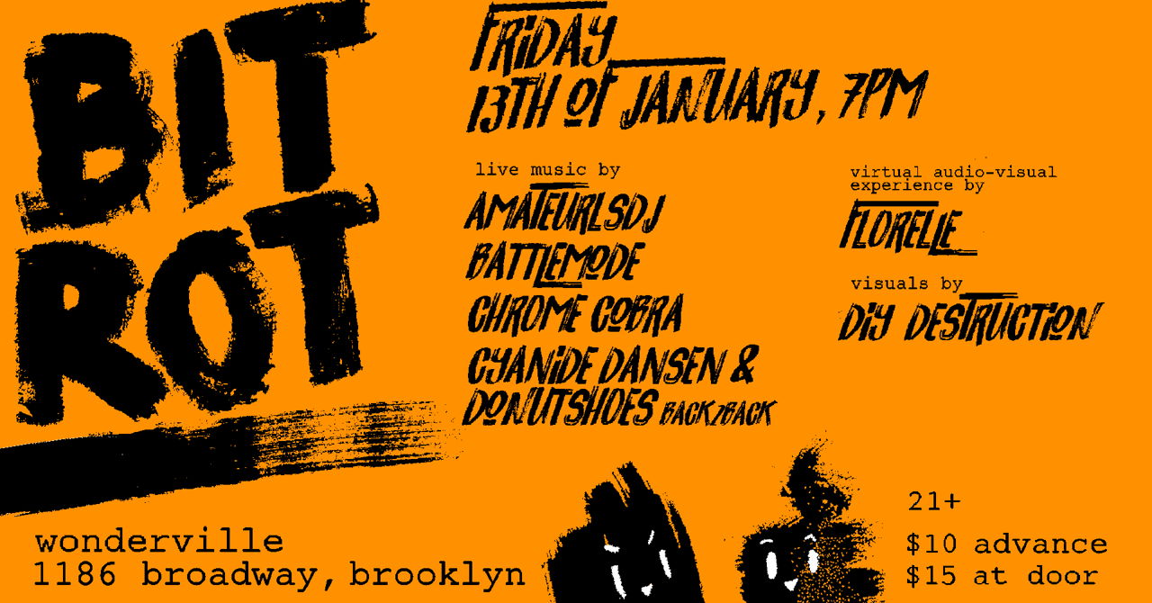 Bit Rot is Chiptune Night! Join us for a night of crunchy and danceable music by artists from all over the world (Really!) Featuring live music from:
