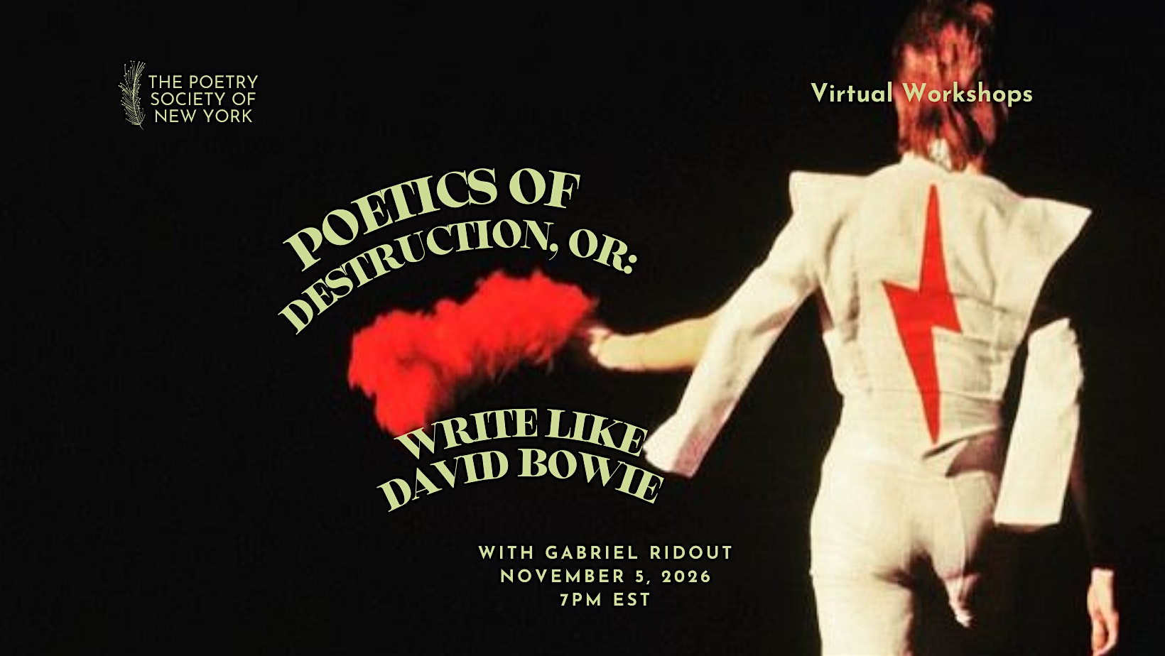 Part of The Poetry Society of New York's Weekly Virtual Workshop Series.
