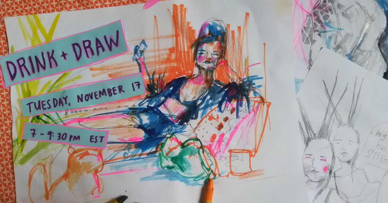 Please join us for another virtual Drink + Draw on Tuesday, November 17, 7-9:30pm EST.