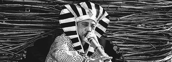 With funding from the Antioch Abroad Program, Ackamoor, Simmons, and Asante travelled to Amsterdam and Paris, where they met drummer Donald Robinson, christened their band, and then embarked on a pan-African odyssey, studying traditional music, collecting instruments and costumes, and absorbing local customs every stop of the way. Traveling through Morocco, Senegal, and Uganda, The Pyramids also studied with the Massai and Kikuya tribes of Kenya, soaked in the mysticism of Dogomba king prayer drummers in Ghana, and explored the rock-hewn churches of Lalibela, Ethiopia. Impressed by the shamanic communities witnessed during their journeys, The Pyramids returned to Ohio with a newfound determination to break the crushing mindset of America’s ghettos through the introduction of a new set of rituals. Their mesmerizing theatrical pageants became filled with an atmosphere of dance, magic, drama, and procession, carried along by their new old African instruments and costumes. During this period The Pyramids self-released a trilogy of highly sought-after LPs of fervent modal jazz, with funky basslines buttressing aggressive polyrhythms, ominous chants, and Ackamoor’s ecstatic blowing. They moved to Oakland, where they embraced the Bay Area’s psychedelic scene, and disbanded in 1977 following a final show at the Berkeley Jazz Festival.