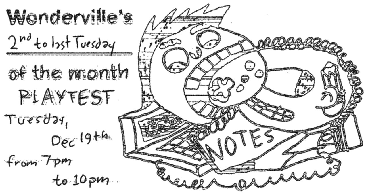 Wonderville's 2nd to Last Tuesday of the month PLAYTEST