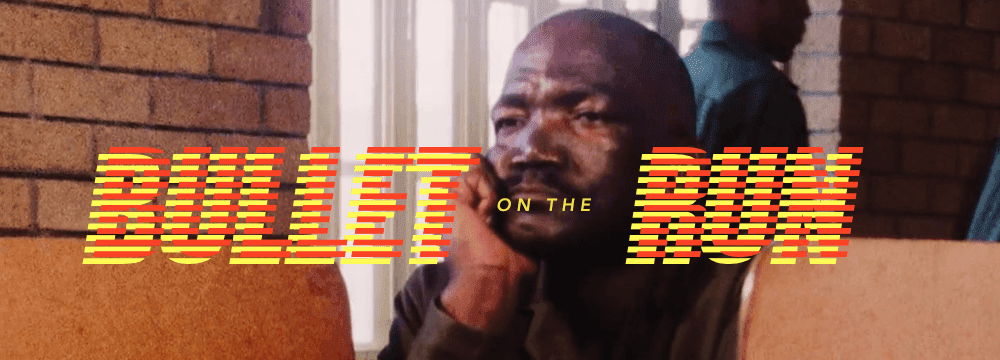 This time, Bullet stakes his reputation on the line by infiltrating one of South Africa’s toughest prisons to unfold the mystery of a police corruption ring lorded over by a mob boss known only as “Snake”, with whom Bullet has deep – and bitter – roots. What initially starts as a funky shoot-em-up goes full courtroom drama, crime procedural and finally becomes an archetypal prison film, as Bullet must band together with other ripped-off inmates to fight Snake’s minions. BULLET ON THE RUN expands the world of the first film, including more elaborate stunts, and setting Joe up with a bashful folk singer named Patience (Thandi Mbongwe). As in JOE BULLET, the blood is neon-fluorescent while every moment of violence (including car chases, a dam crossing, one character getting sand thrown in their eyes, another falling backwards and hitting their head on a rock) lands with jarring brutality.