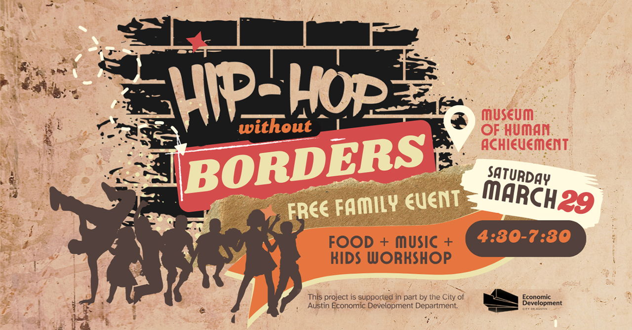 Come join us for HipHop Without Borders, a vibrant community event, highlighting the rich diversity of hip-hop culture with food, music, and dance for kids (all ages)!